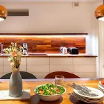 Boendet har också ett komplett kök som är utrustat med ugn och diskmaskin. Tunnelbanestationen Gneisenaustrasse är också belägen cirka 5 minuter bort till fots.